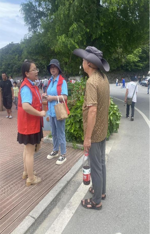 為助力本次旺季經(jīng)營(yíng)活動(dòng),九宮山公司連同下沉社區(qū)(云中湖社區(qū))聯(lián)合組織開(kāi)展“共同締造”行動(dòng),堅(jiān)持“核心是共同、基礎(chǔ)在社區(qū)、黨建為根本、群眾為主體、創(chuàng)新為動(dòng)力”的基本原則,以打造凝心、誠(chéng)心、連心、舒心、同心的“五心”為載體,從身邊的小事、景區(qū)的實(shí)事做起。九宮山公司執(zhí)行總經(jīng)理陳文輝帶領(lǐng)班子成員,組織43名黨員干部職工志愿者服務(wù)隊(duì),穿上紅色馬甲傾情而出,秉著“賓客至上”的理念,兩個(gè)人一組分工協(xié)作,協(xié)助云中湖社區(qū)引導(dǎo)游客入座;向游客介紹系列活動(dòng)概況;介紹“九宮九寶”美食;提供景點(diǎn)、公廁、衛(wèi)生院等指向服務(wù);協(xié)助大會(huì)維護(hù)活動(dòng)現(xiàn)場(chǎng)秩序等,做好衛(wèi)生、安全、秩序、后勤、醫(yī)療等一切保障,為活動(dòng)的順利開(kāi)展奠定基礎(chǔ)。